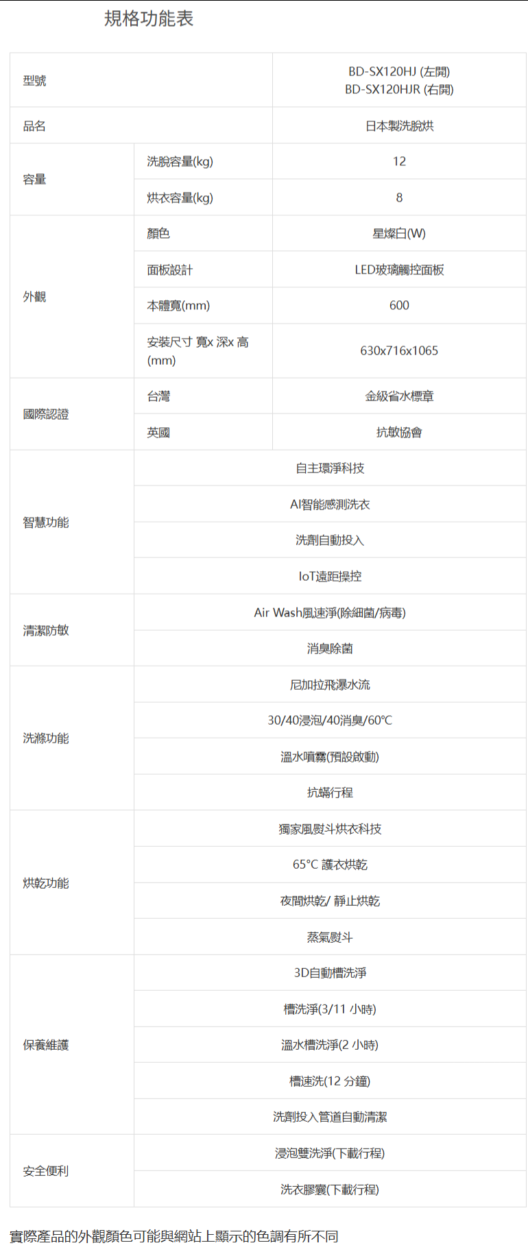 *✨來電詢價更優惠✨HITACHI日立 BD-SX120HJR右開 12kg 滾筒洗脫烘洗衣機