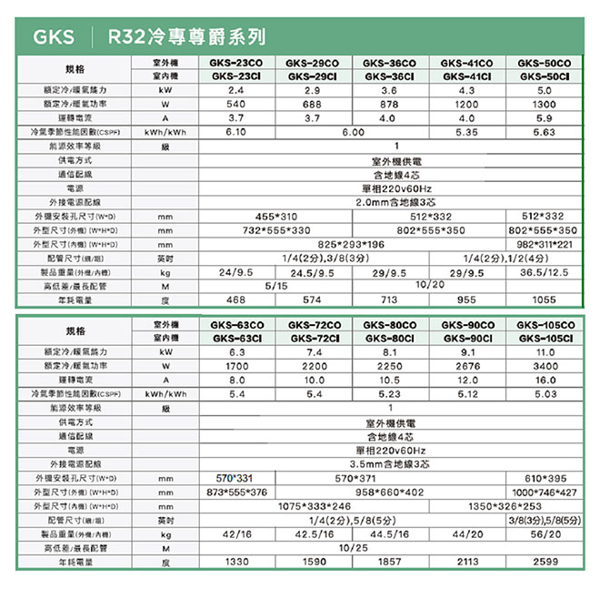 *✨歡迎來電洽詢✨格力冷氣一對一變頻分離式單冷GKS系列