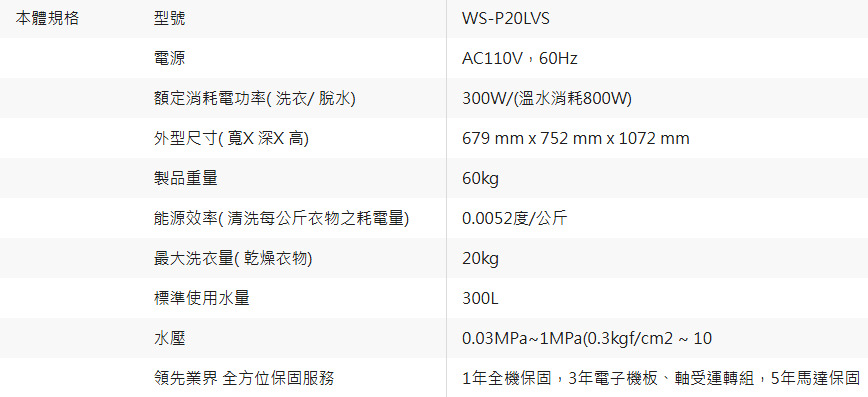 *✨歡迎來電洽詢✨CHIMEI 奇美 20公斤變頻洗衣機 WS-P20LVS