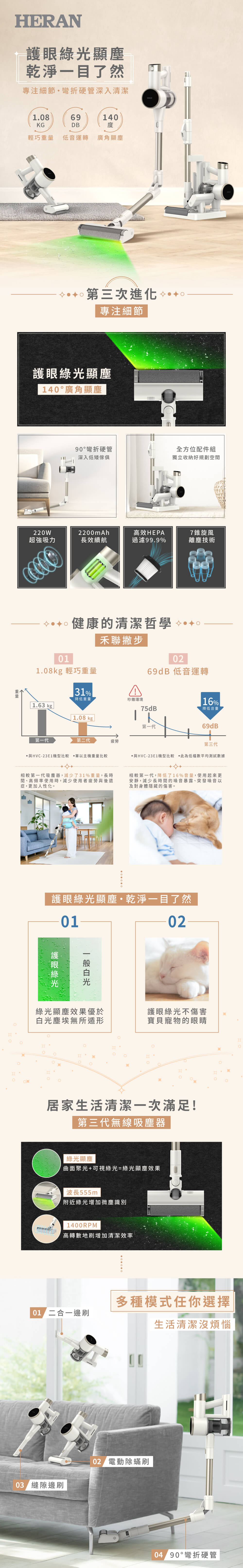 *✨歡迎來電洽詢✨HERAN 禾聯 綠光降噪無線吸塵器HVC-22PVG50