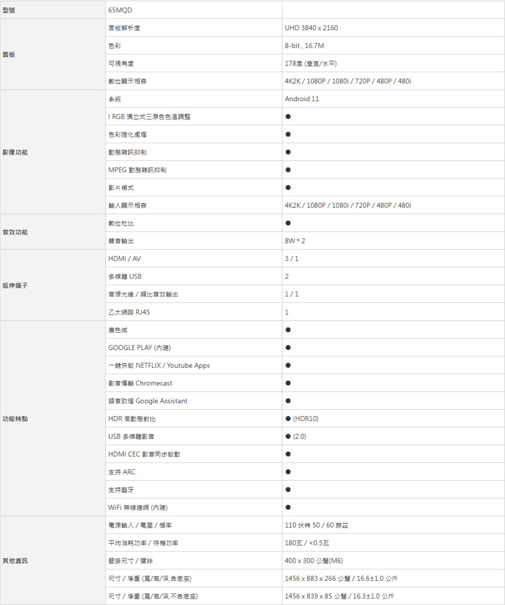 .65吋機種