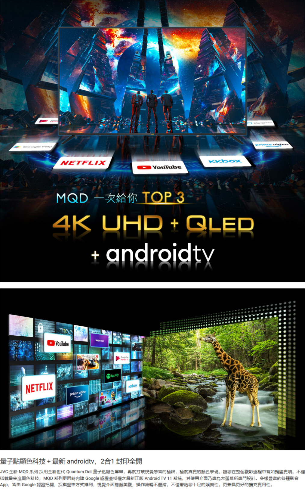 *✨歡迎來電洽詢✨JVC 65吋 4K QLED量子點連網智慧顯示器 65MQD