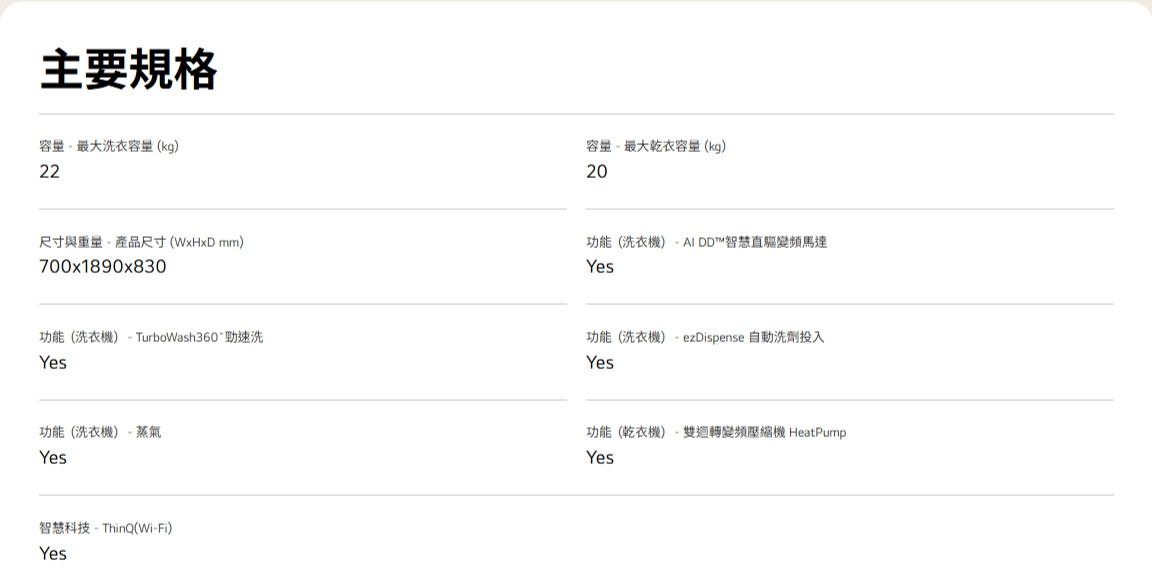 *✨歡迎來電洽詢✨【LG樂金】 WD-S2220VM 22公斤 洗衣 + 20公斤 乾衣 星辰銀 洗19公斤+乾16公斤 WashTower™