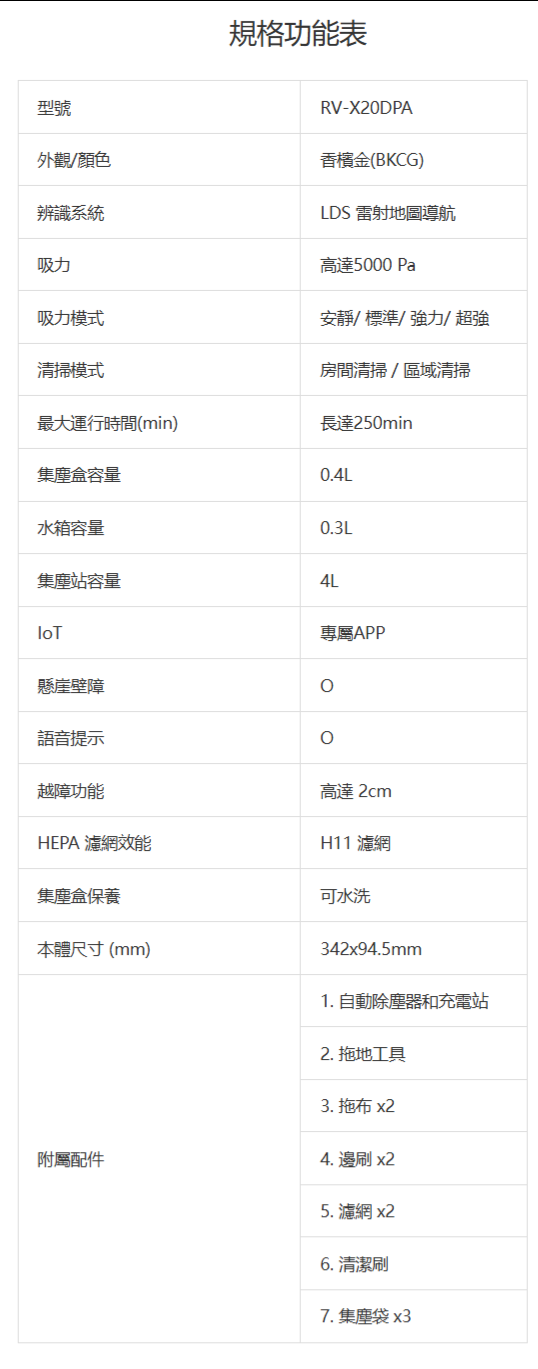 *✨此為現金優惠價不含運費 如有需要請先電話洽詢✨Hitachi 日立家電 RVX20DPA 自動集塵濕拖掃地機器人
