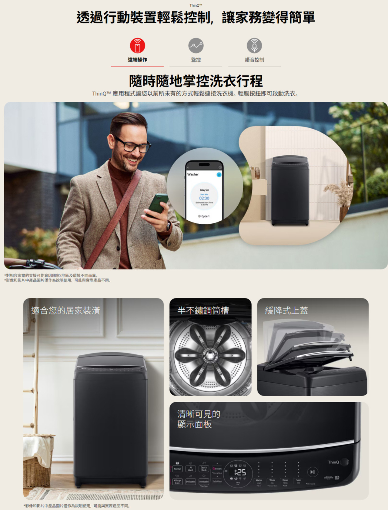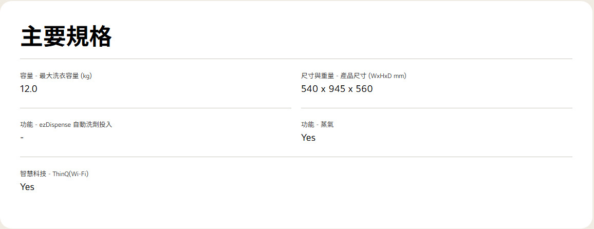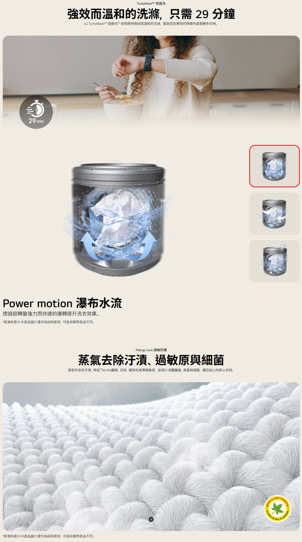 AI DD™ 智慧直驅變頻馬達:AI 智慧感測 提供最適洗程 54公分極窄機身:空間規畫更便利 Allergy Care 過敏防護:有效減少居家塵蟎、細菌、真菌等過敏原 TurboWash™ 勁速洗:29分鐘快速深層洗淨衣物 省時節能 6 motion 智慧模擬手洗™ :模擬六種手洗動作