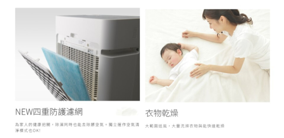 搭載四重防護濾網, 可單獨運作空氣清淨模式。同時具備PM2.5集塵率以及抑制細菌、致敏物質的良好效果,同時去除令人在意的空間異味。不只除濕,也維持室内空氣好品質!