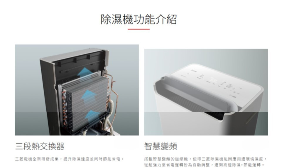 推出全新的三菱獨家—最高規格五段熱交換器,在既有的三段構造上再增加兩段熱交換器,同時搭配變頻壓縮機,大幅提升除濕及節能效果,也維持原有的優異靜音表現。