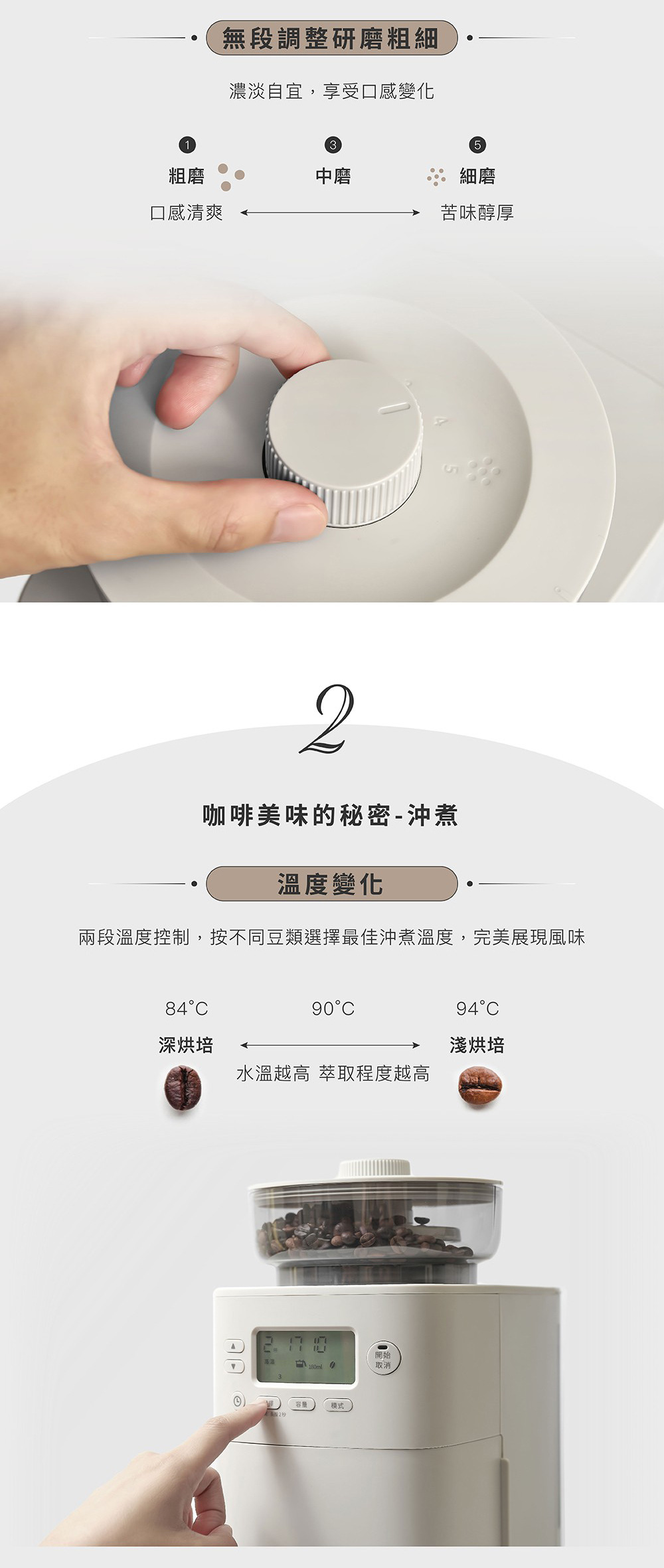 .無段式調整研磨粗細,自由調整咖啡濃度